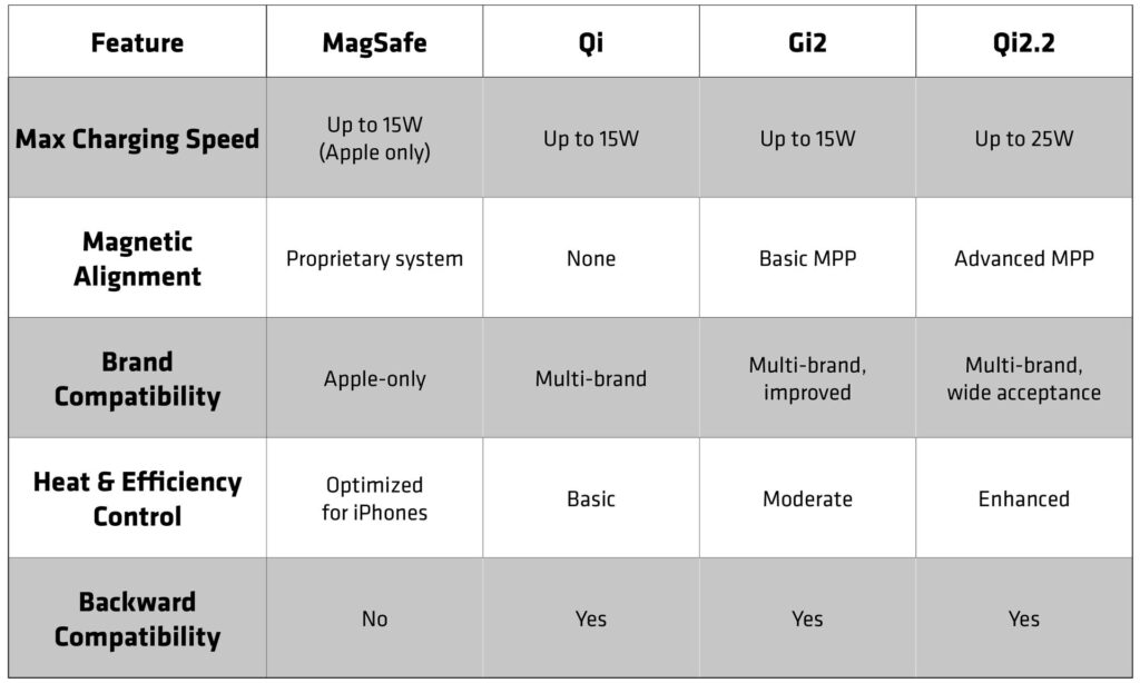 最大25Wの充電容量/速度、より優れた磁気アライメント、幅広いデバイス互換性を提供するQi2.2は、単なる小さなアップグレードではなく、ゲームチェンジャーと言える存在です。